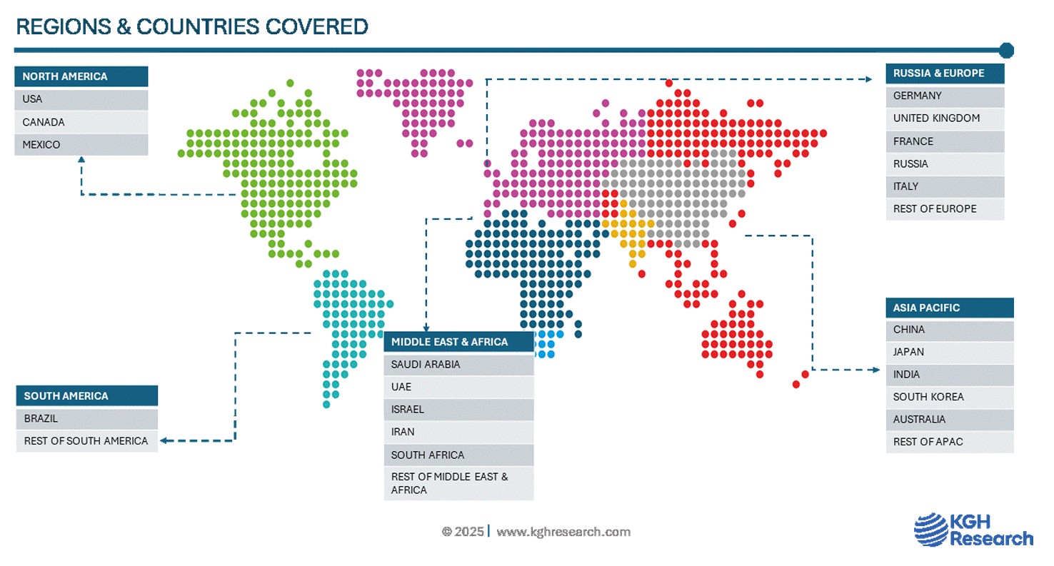 US, Canada, Mexico, UK, Germany, Italy, Russia, France, China, India, Japan, South Korea, Australia, South Africa, UAE, Saudi Arabia, Israel, Iran, Brazil, and Rest of the World