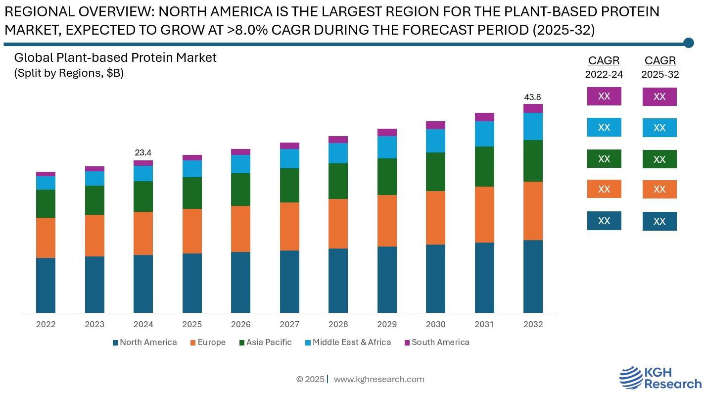 Market Overview: The global plant-based protein market was valued at approximately USD 23.4 billion in 2024 and is projected to grow at a compound annual growth rate (CAGR) of 8.1% from 2025 to 2032. The market is influenced by health, environmental, ethical, and technological factors that are changing consumer preferences and the food industry. One major driver is the growing awareness of the health benefits of plant-based diets. These diets can lower the risks of heart disease, obesity, and diabetes, encouraging consumers to cut back on or stop eating animal-based protein. Concerns about environmental sustainability also play a vital role. Issues like greenhouse gas emissions, land use, and water consumption from animal agriculture are leading both individual and governments to support plant-based options.